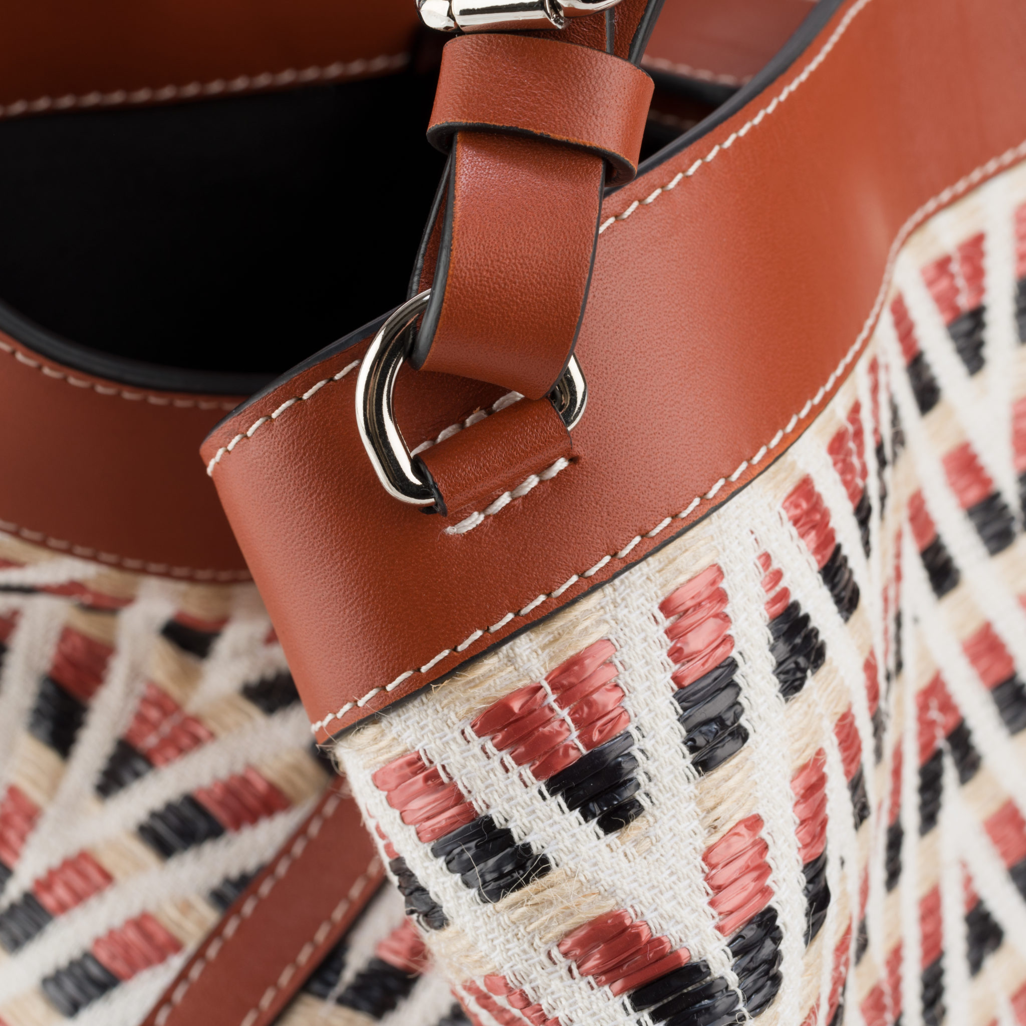 Made of braided raffia with a geometric pattern and brown leather, the Cubo Africa bag is a summer wardrobe essential.