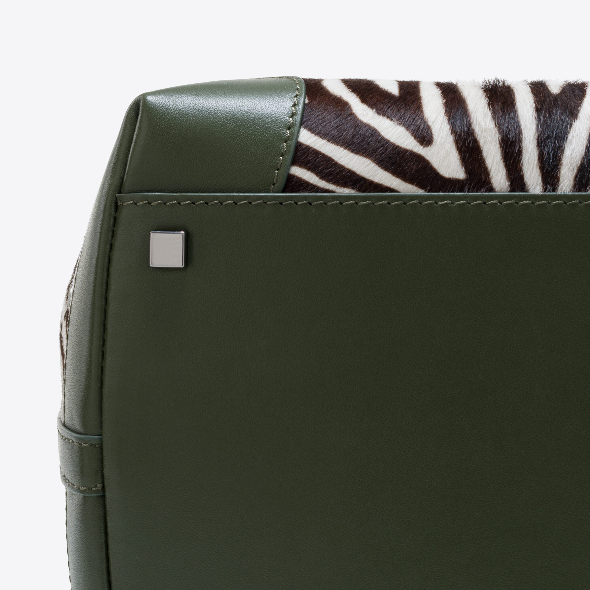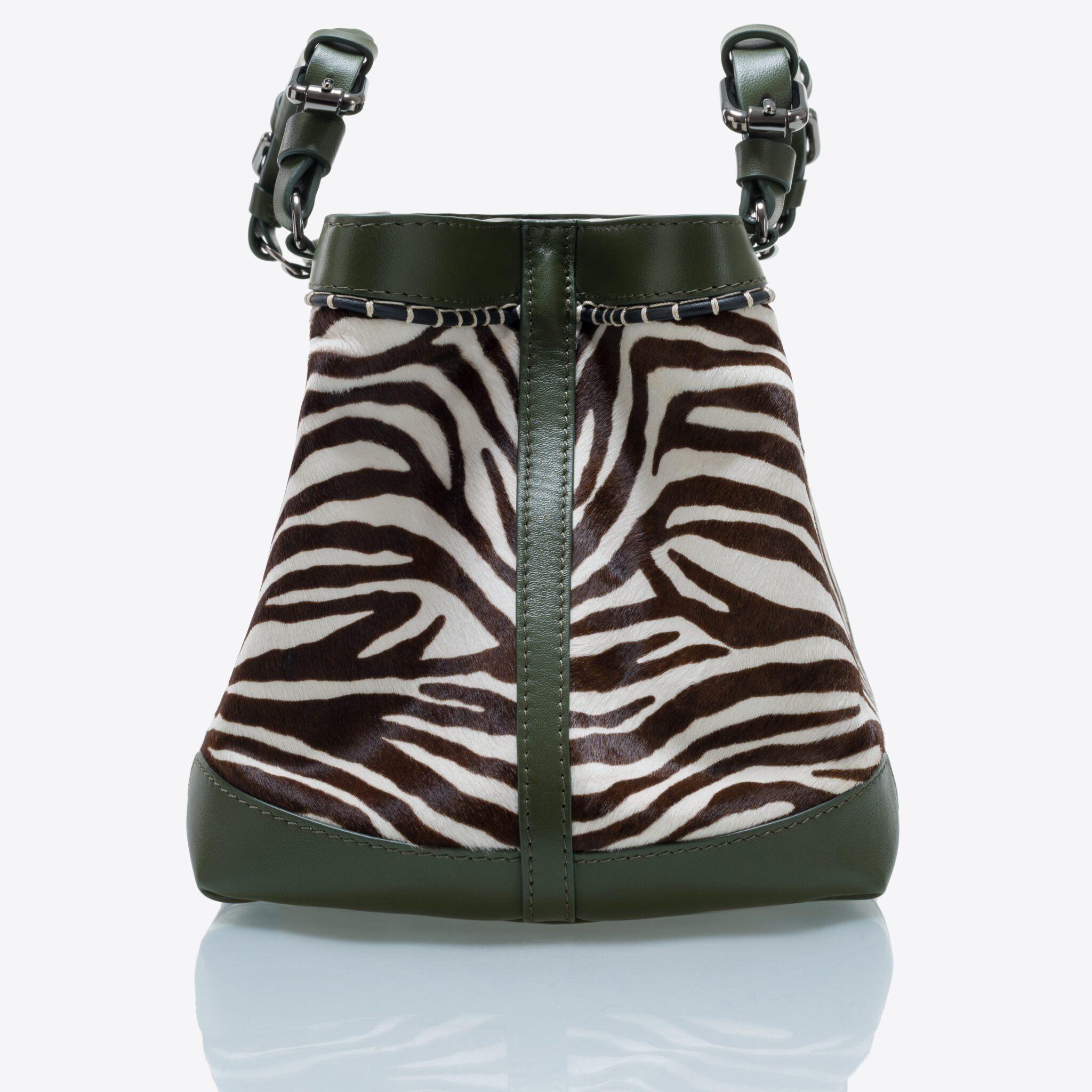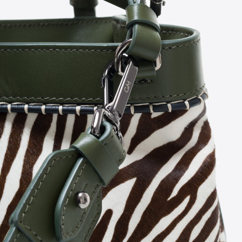 The Cubo Marmara honours contrasts and is enriched by unexplored combinations. It is adorned with vibrantly coloured leathers and a foal-like calf printed with a zebra pattern, a generous combination that evokes the richness and sumptuousness of oriental fabrics. Equipped with a nappa calf leather removable shoulder strap, the Cubo can be carried by hand, on the shoulder or crossbody.