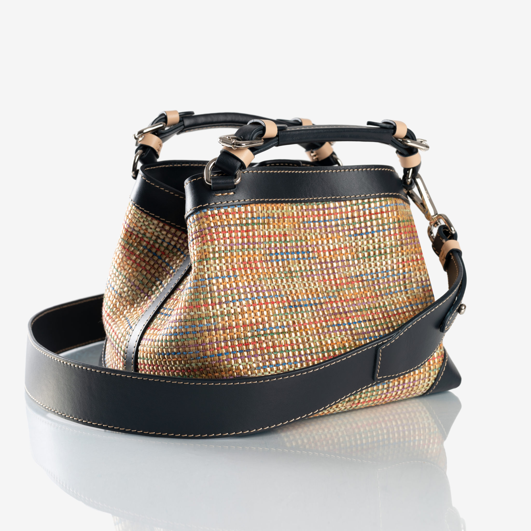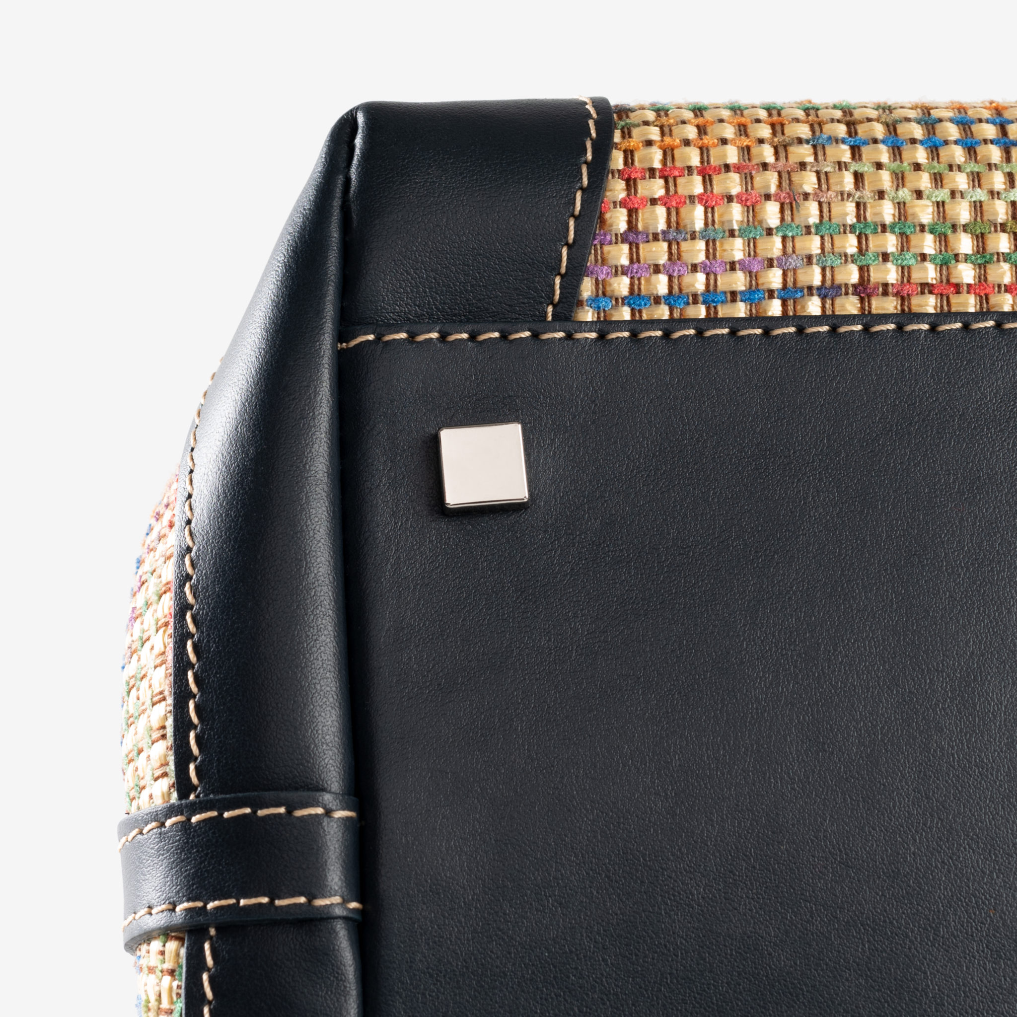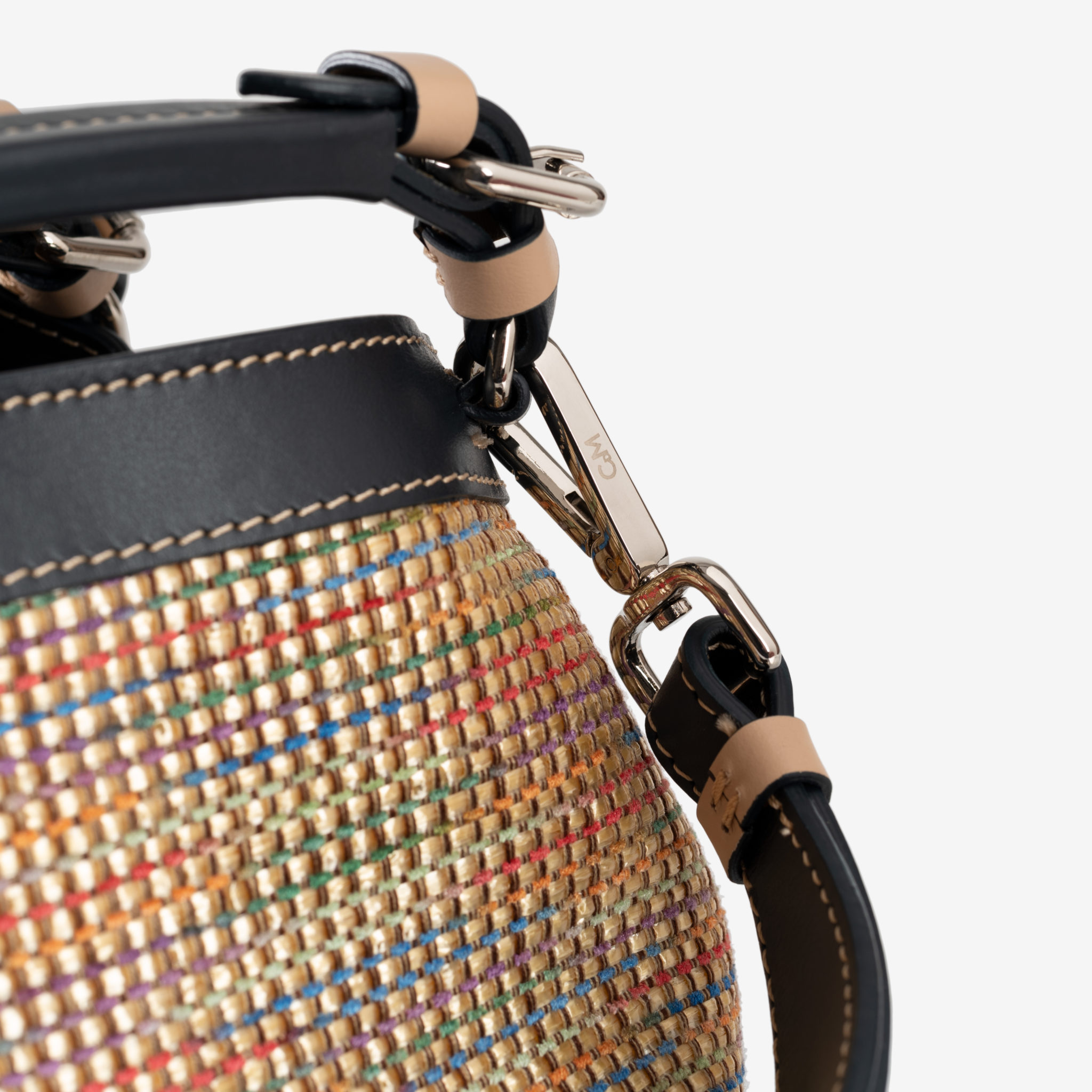 An essential ally for the summer season, the Cubo Praia mixes multicolored raffia and elegant leather, offering surprising contrasts.