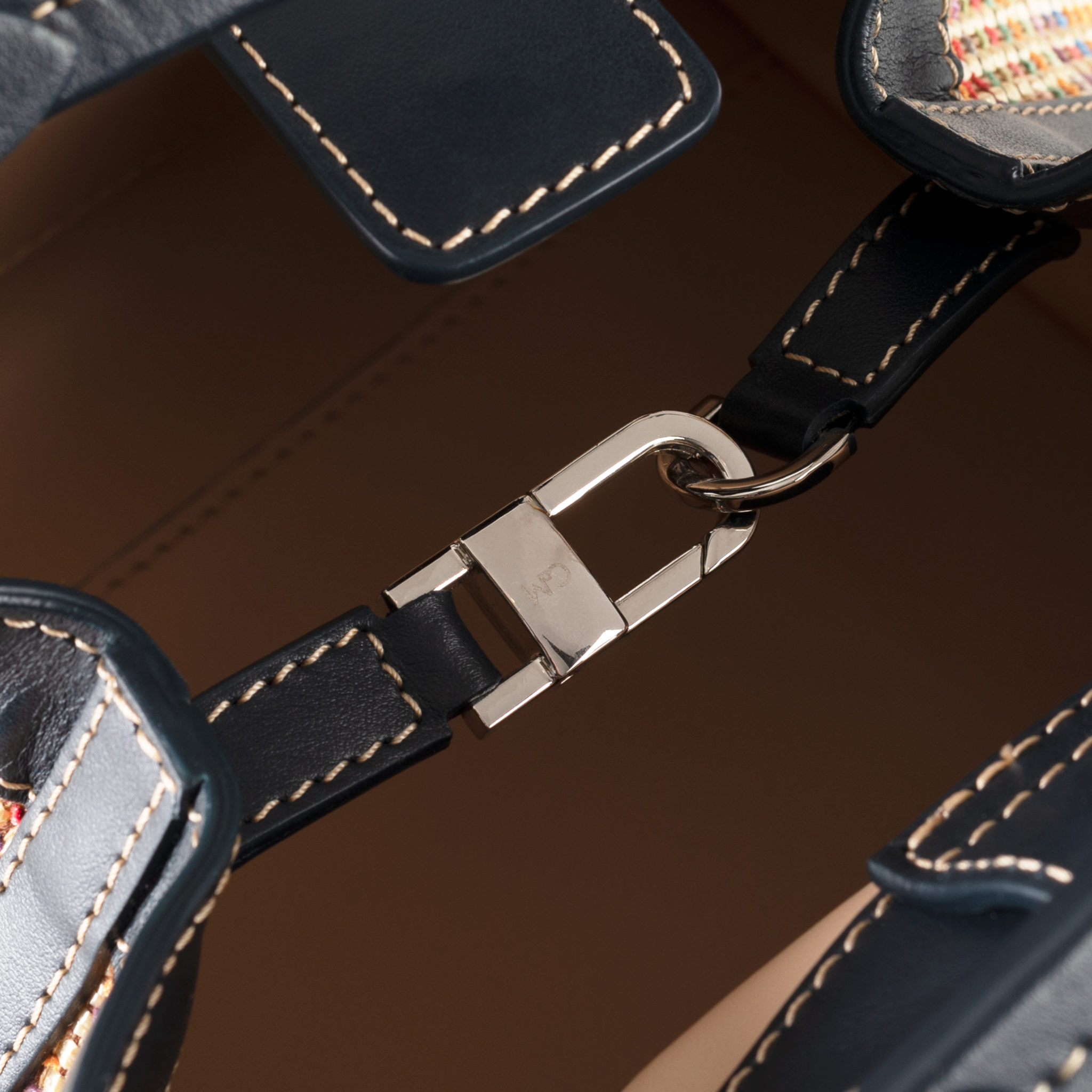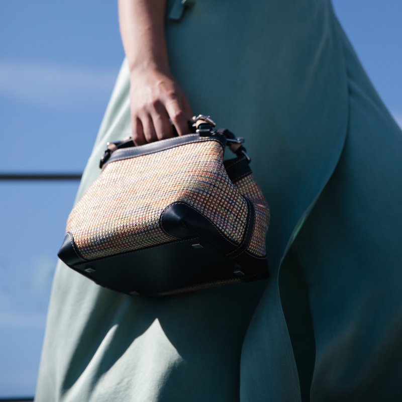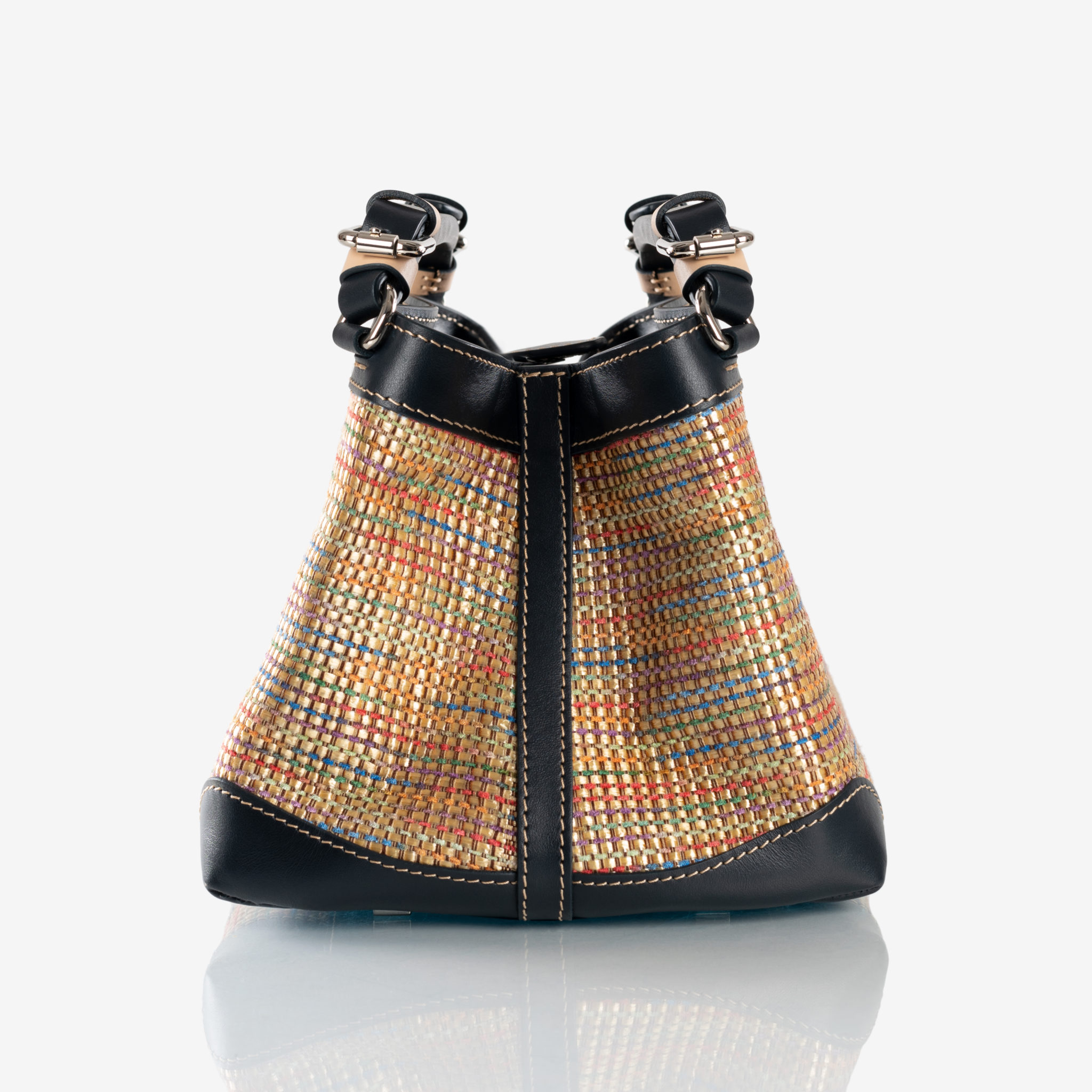 An essential ally for the summer season, the Cubo Praia mixes multicolored raffia and elegant leather, offering surprising contrasts.