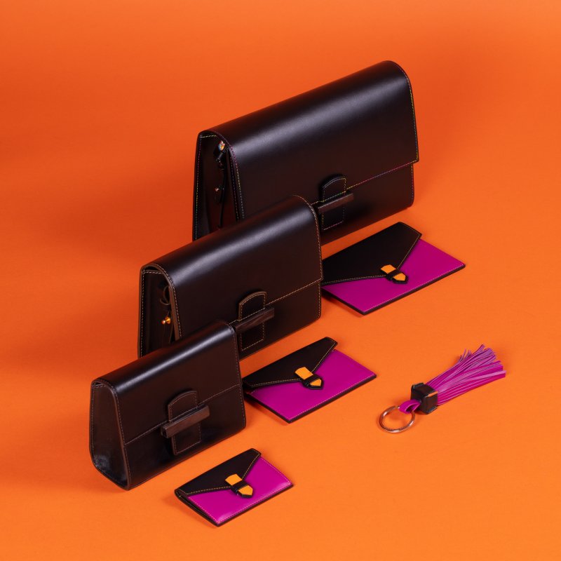 Always on the hunt for a unique piece, distinctive and unfettered by the rules of fashion, Caroline De Marchi offers personalized versions of her designs, with the client’s initials engraved on her bags with interchangeable straps & accessories, which she may alter and transform according to her mood.