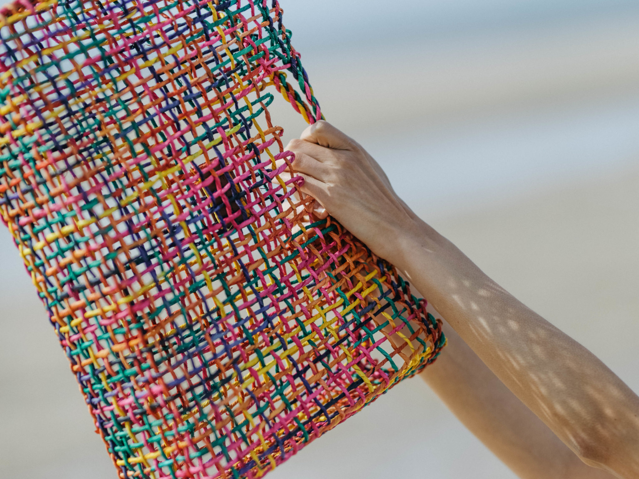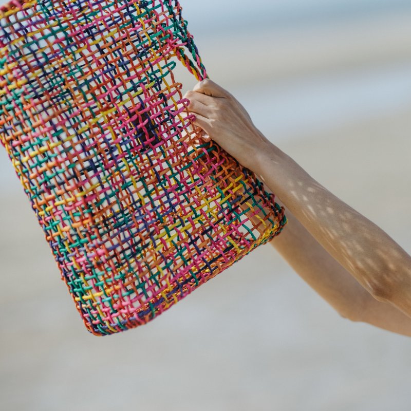 Illuminez votre été avec ce panier multicolore. Compact et pratique, vous pourrez glisser sa pochette dans tous vos sacs.