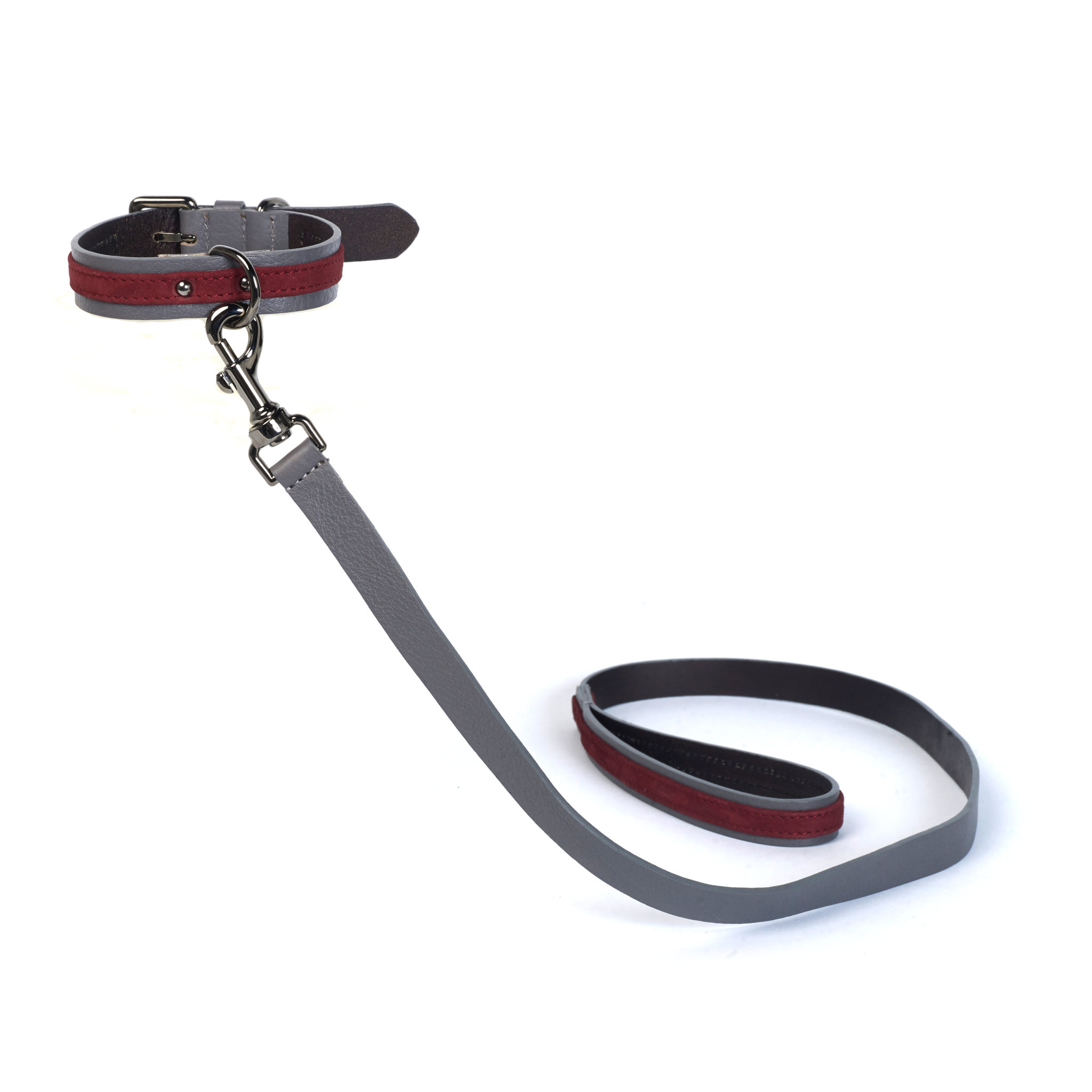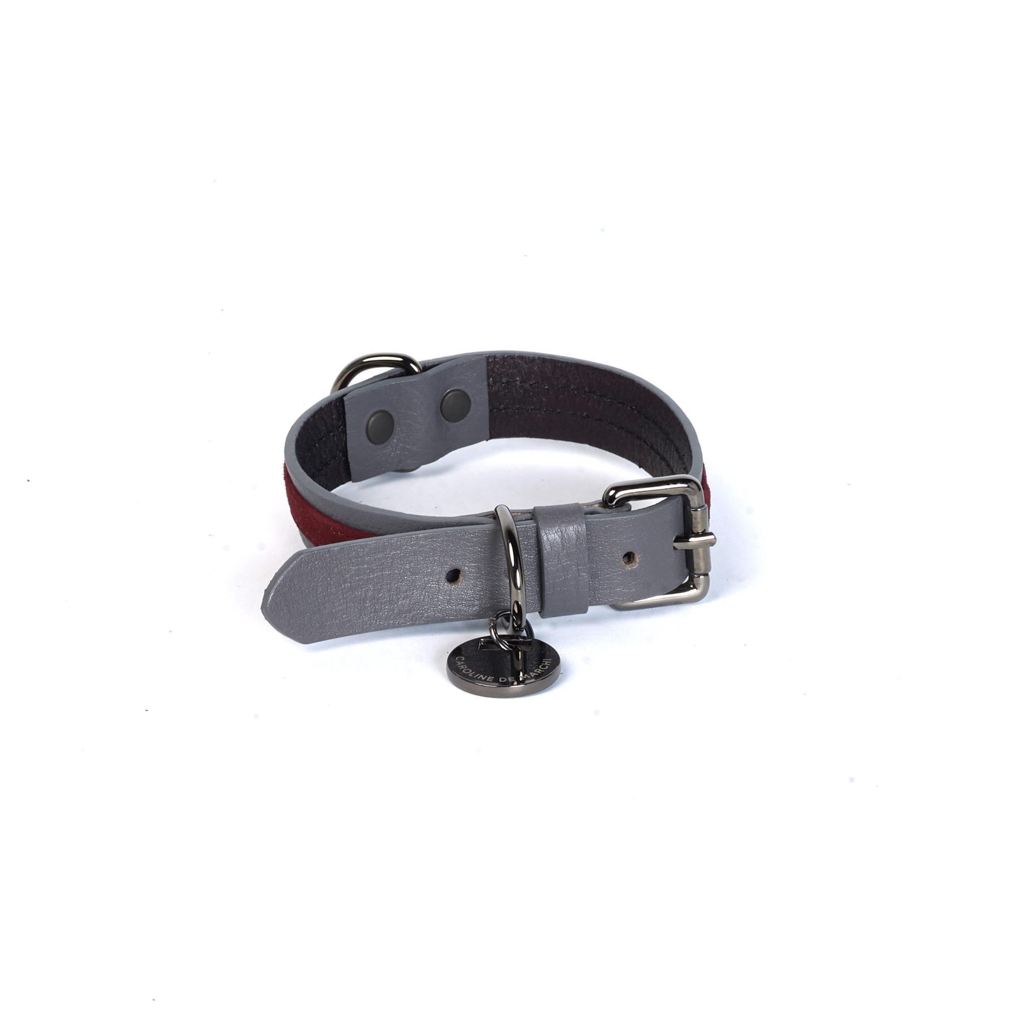 Collier pour chien Jaipur Elia en cuir et velours bordeaux