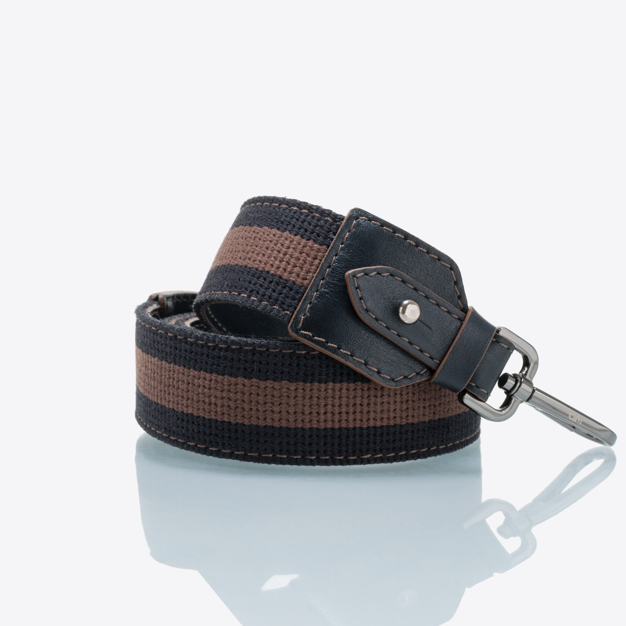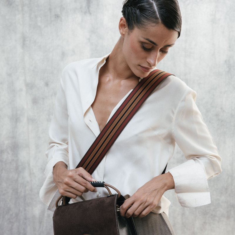 Les bandes bicolores aux couleurs d'automne de notre bandoulière Izgi expriment une sobriété raffinée. Elles apportent également un caractère un peu plus sport à nos modèles intemporels. Personnalisable, la bouclerie peut-être adaptée en finition or mat ou canon de fusil sur demande.