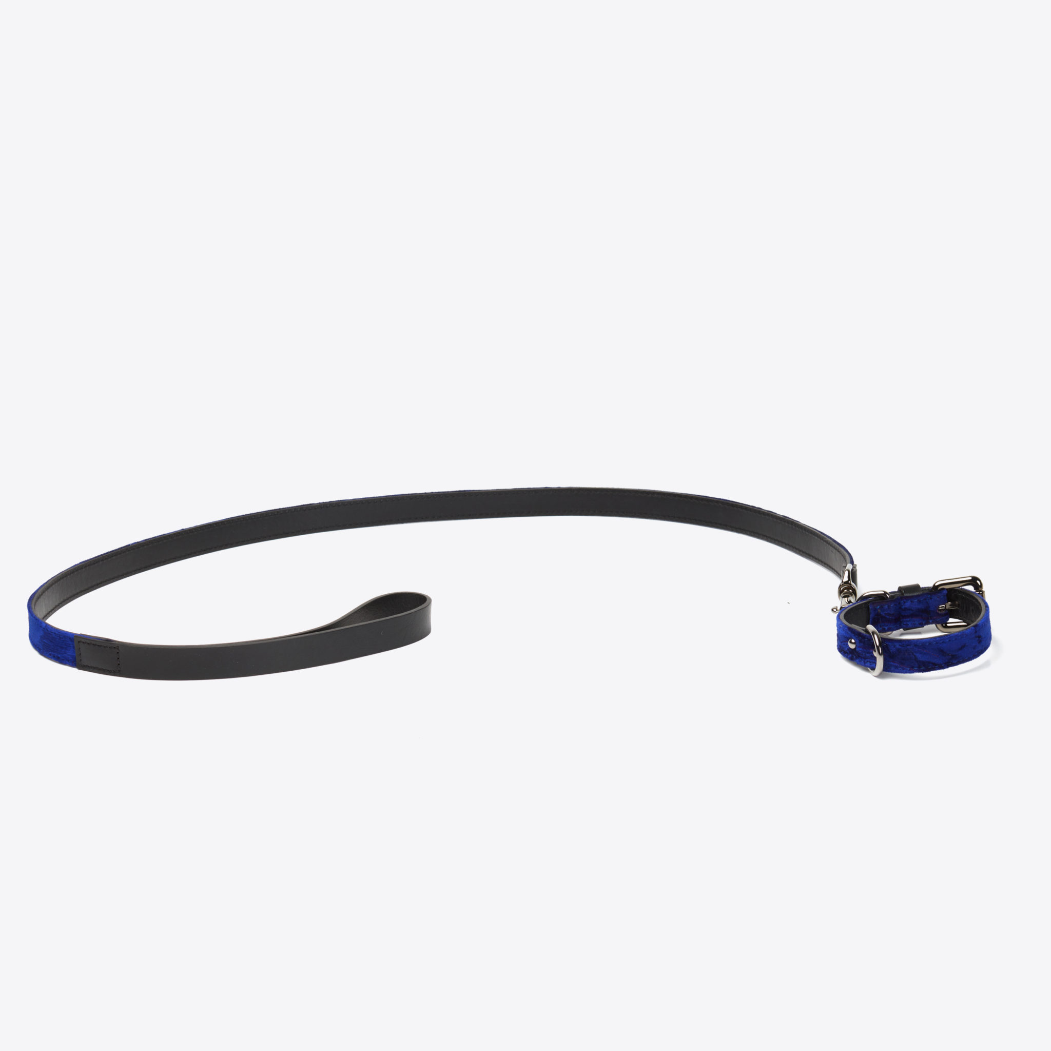Laisse pour chien Jaipur Mitsu en cuir et velours bleu