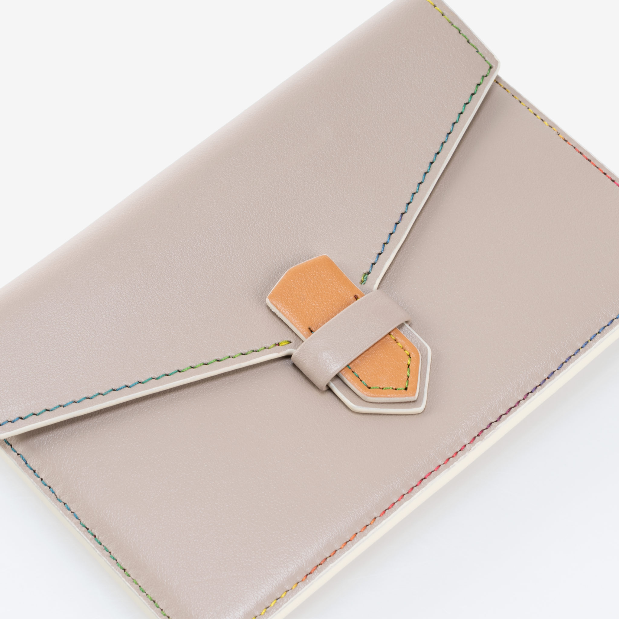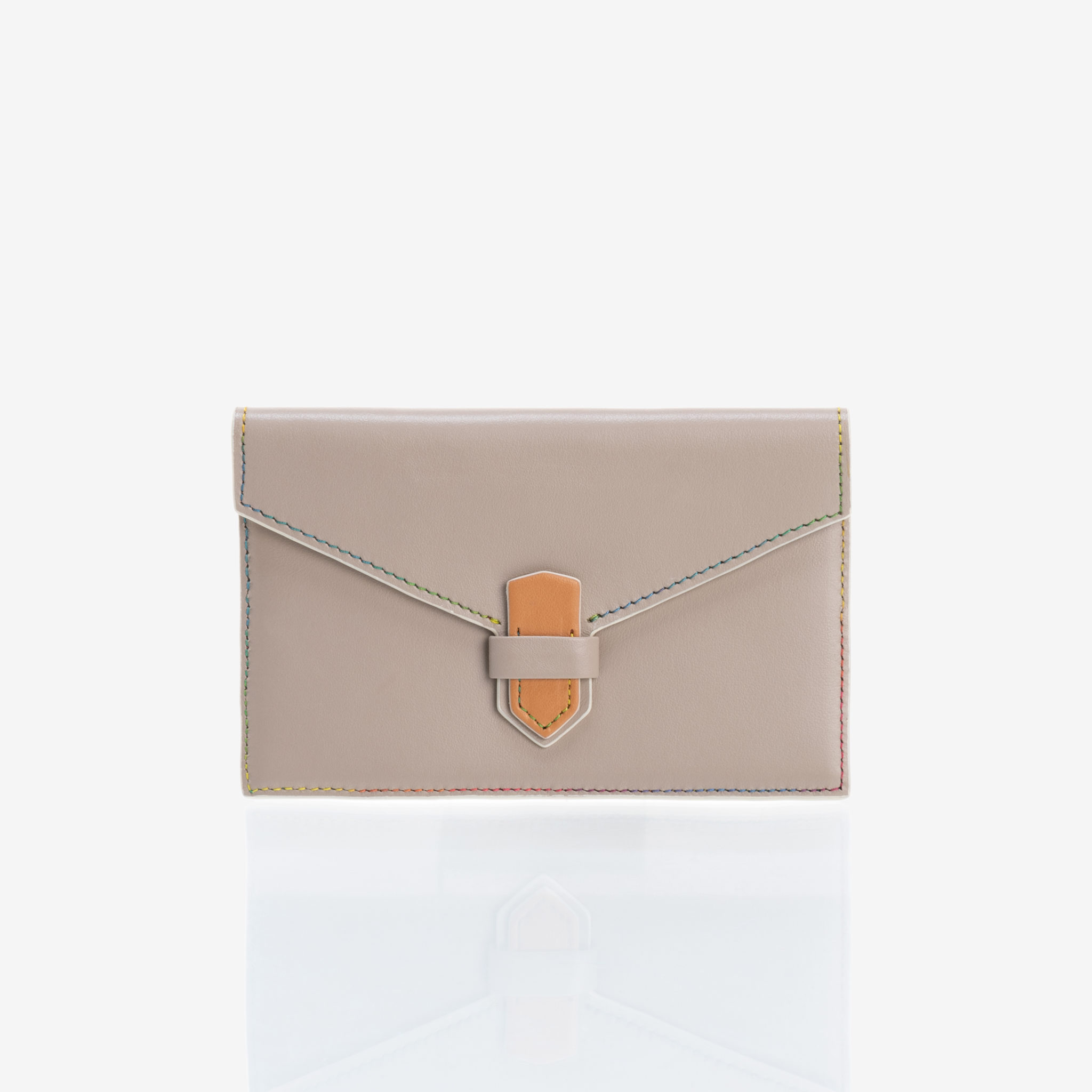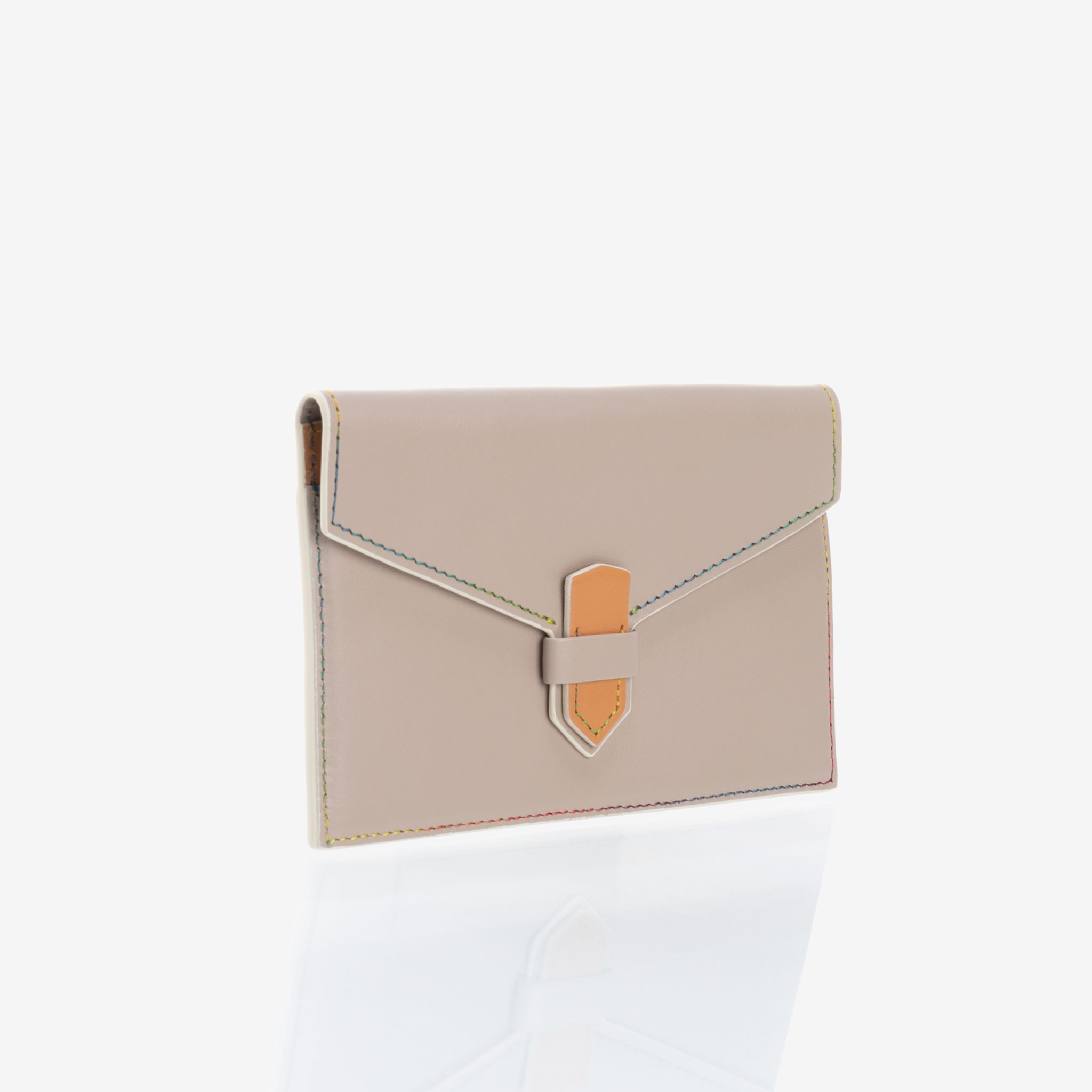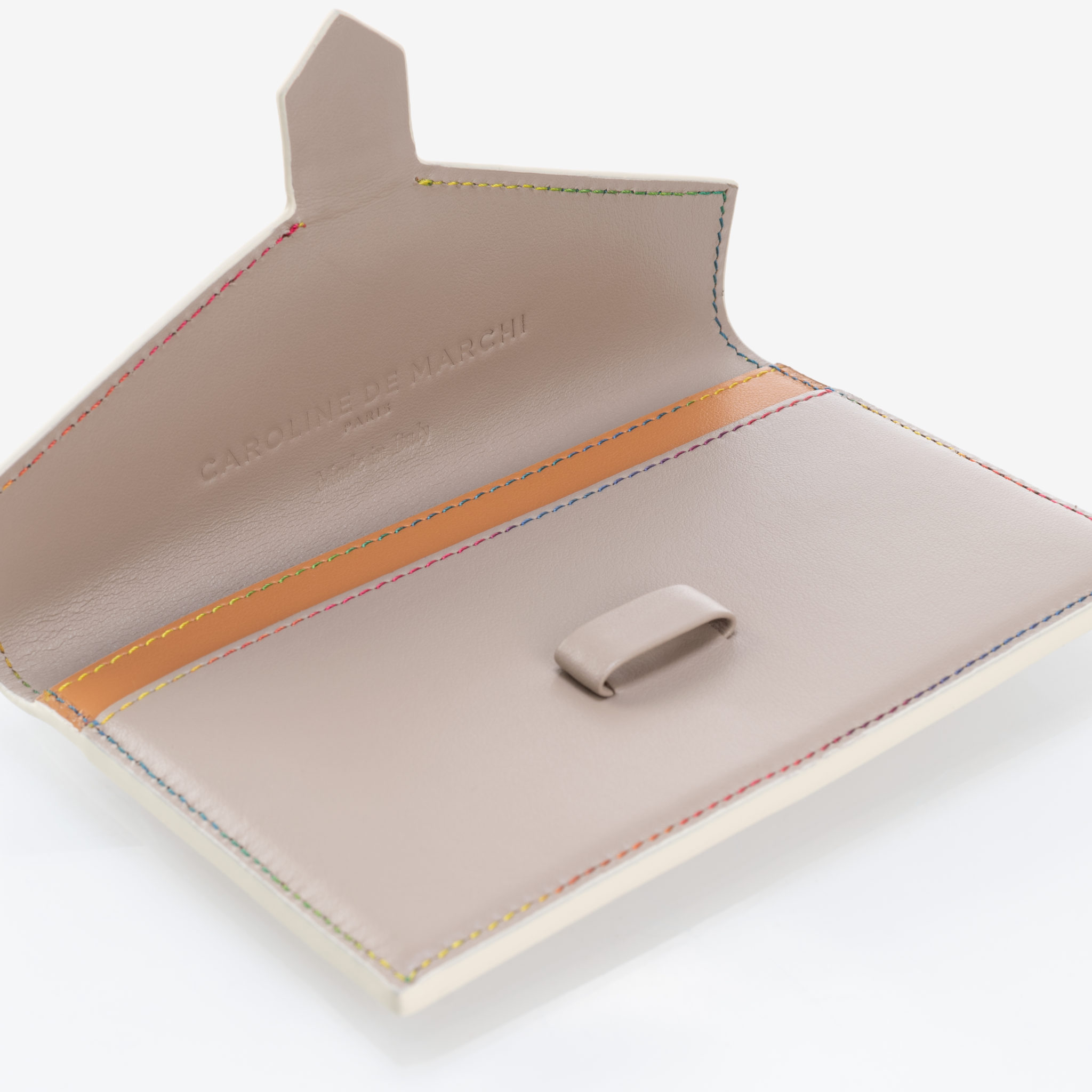 Véritable invitation au voyage, cette pochette, empruntant sa forme pratique et raffinée à une enveloppe, est déclinée en deux formats: porte carte de crédit et porte-passeport.