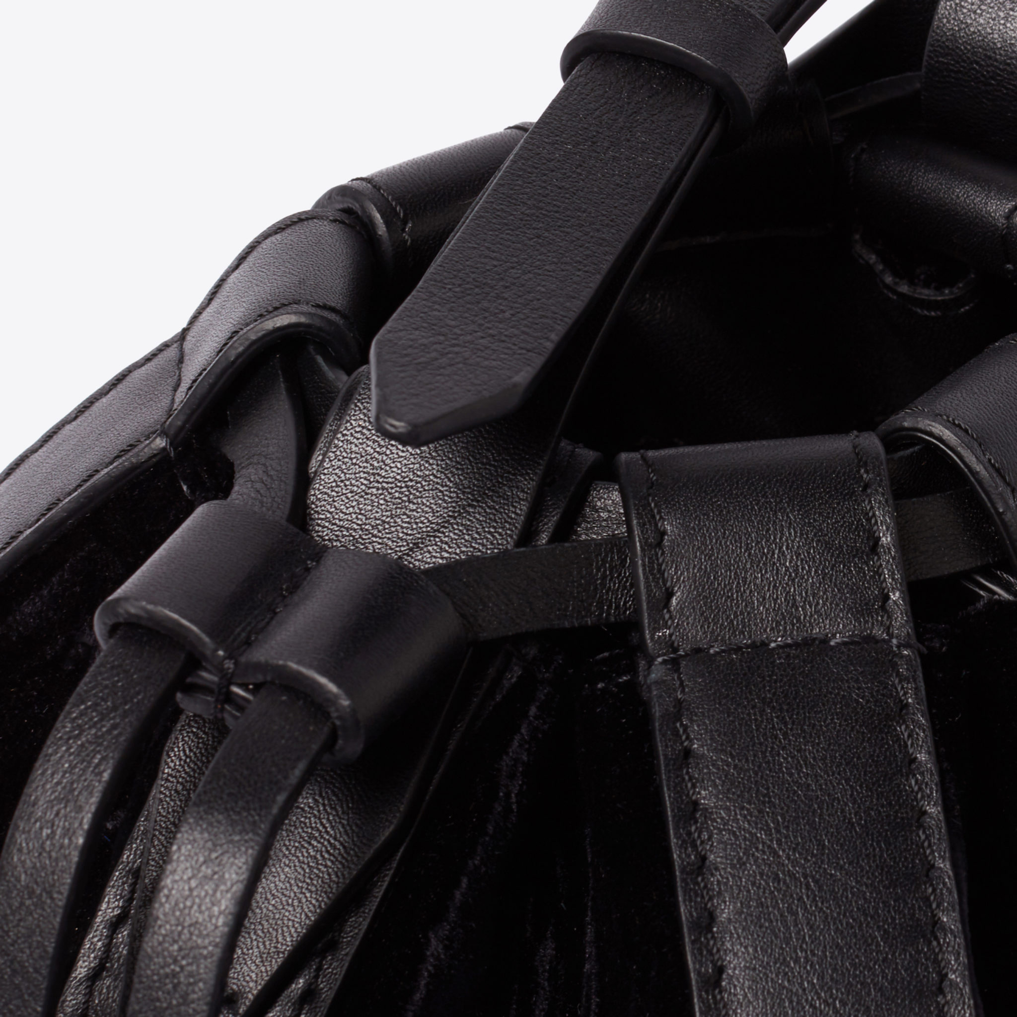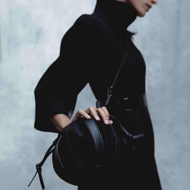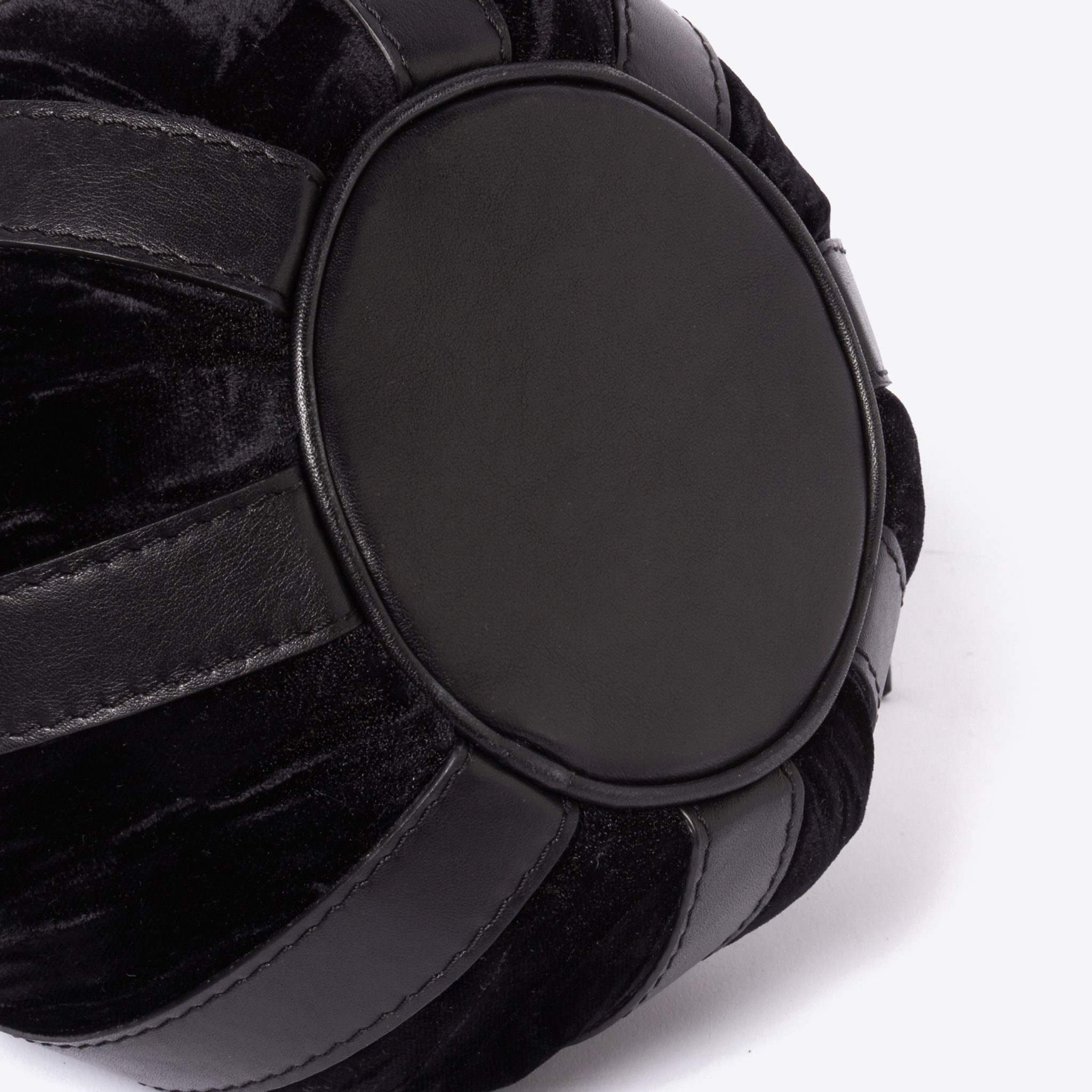 D’un noir intense et mystérieux, ce sac rond en velours frappé et cuir incarne une élégance moderne intemporelle. Doté d’une fine bandoulière en cuir assortie, il se portera à la main, à l’épaule ou crossbody selon les envies.