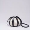 Ce petit sac boule confectionnée dans un mélange de cuir de veau nappa noir et de toile de coton ivoire signe une silhouette harmonieuse, moderne et épurée. Discrets et sophistiqués, les détails de surpiqûres coordonnées et les ornements en bois d'ébène subliment avec finesse ses courbes délicates.