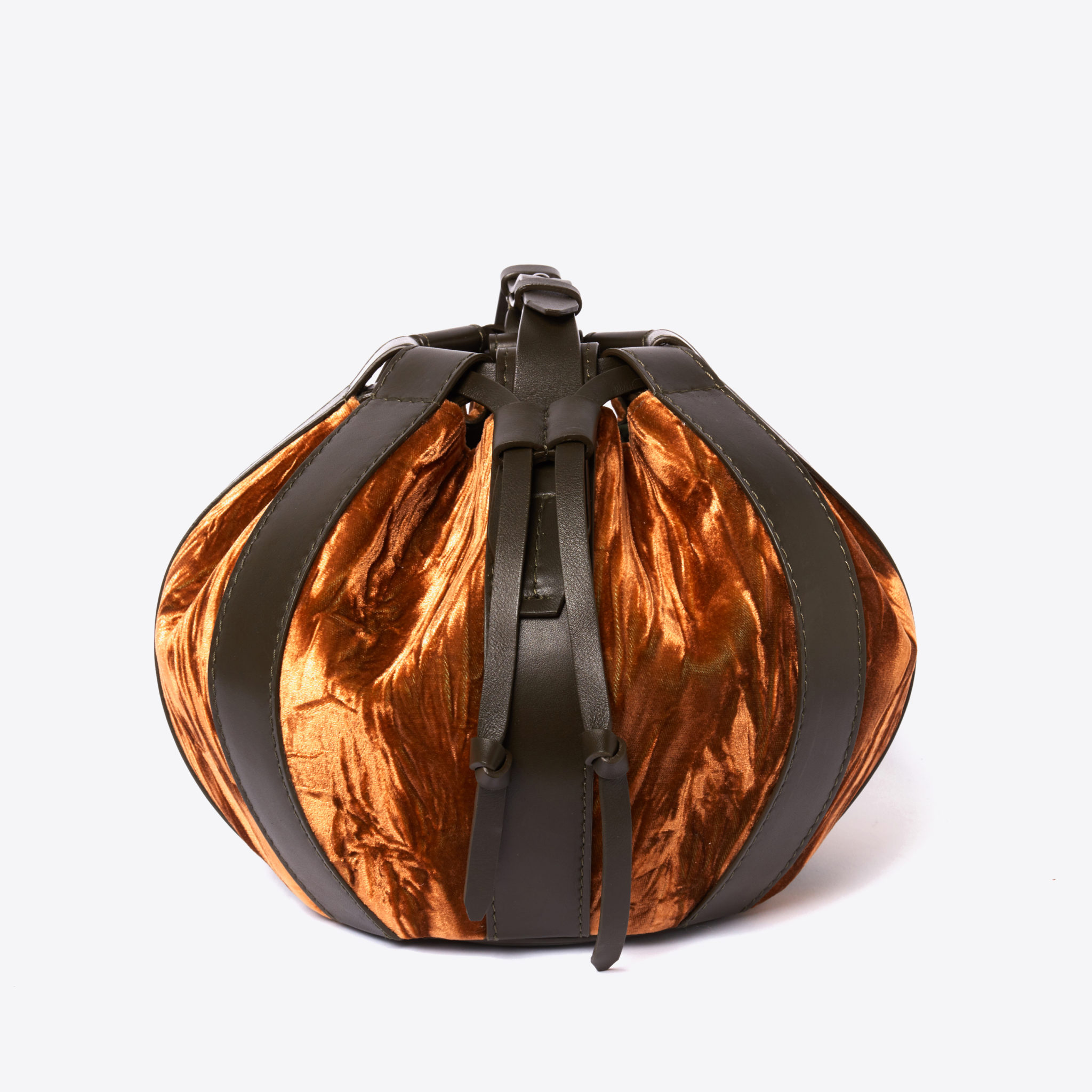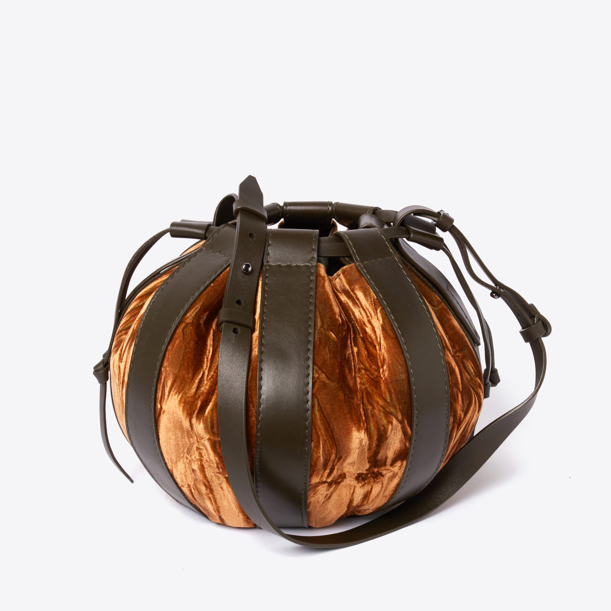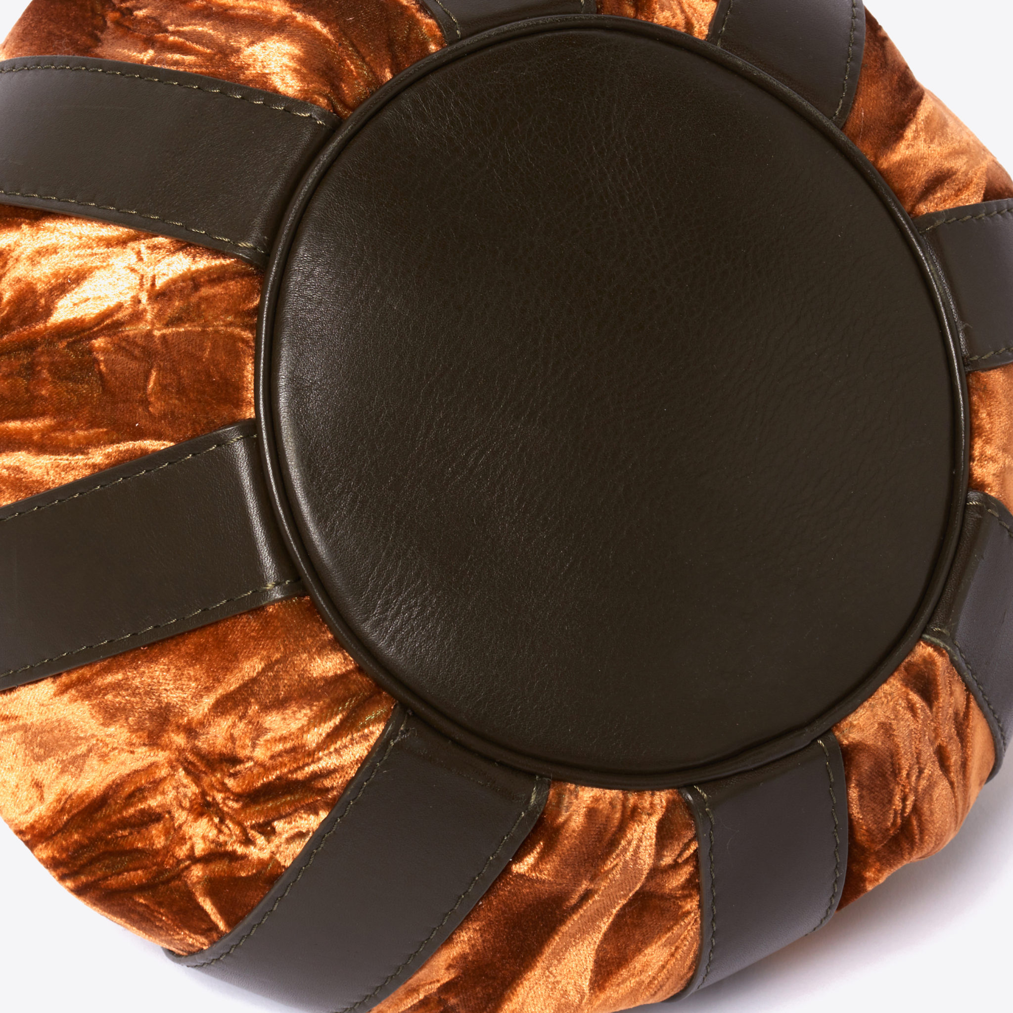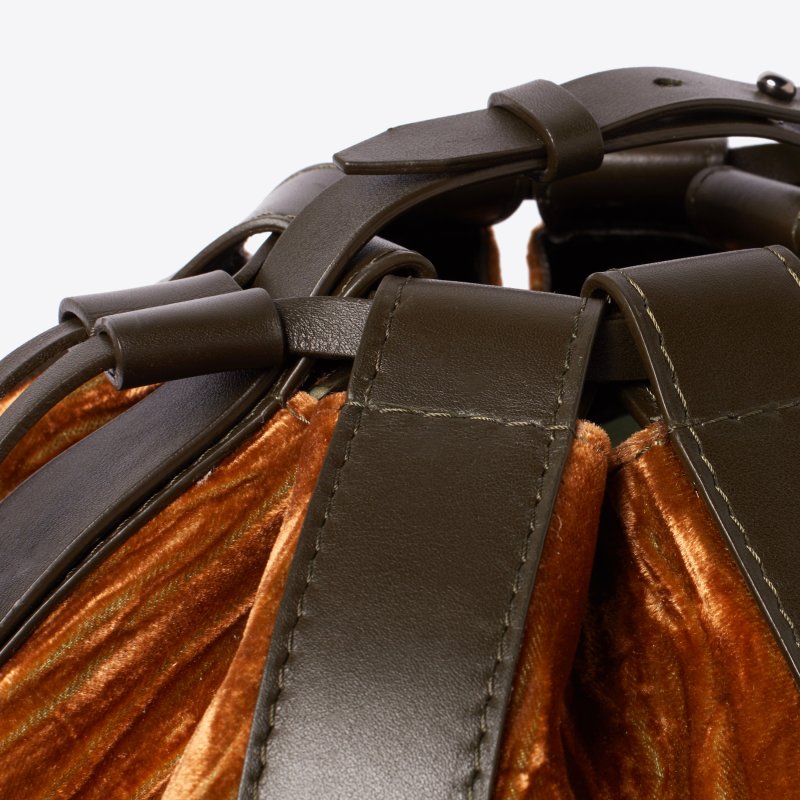 Création féminine élégante, ce sac se pare d’un mélange velours frappé et cuir aux couleurs vibrantes de l’automne. Sublimé par des courbes délicates et des finitions raffinées, le Alma Rana met à l’honneur le précieux savoir-faire de la Maison.