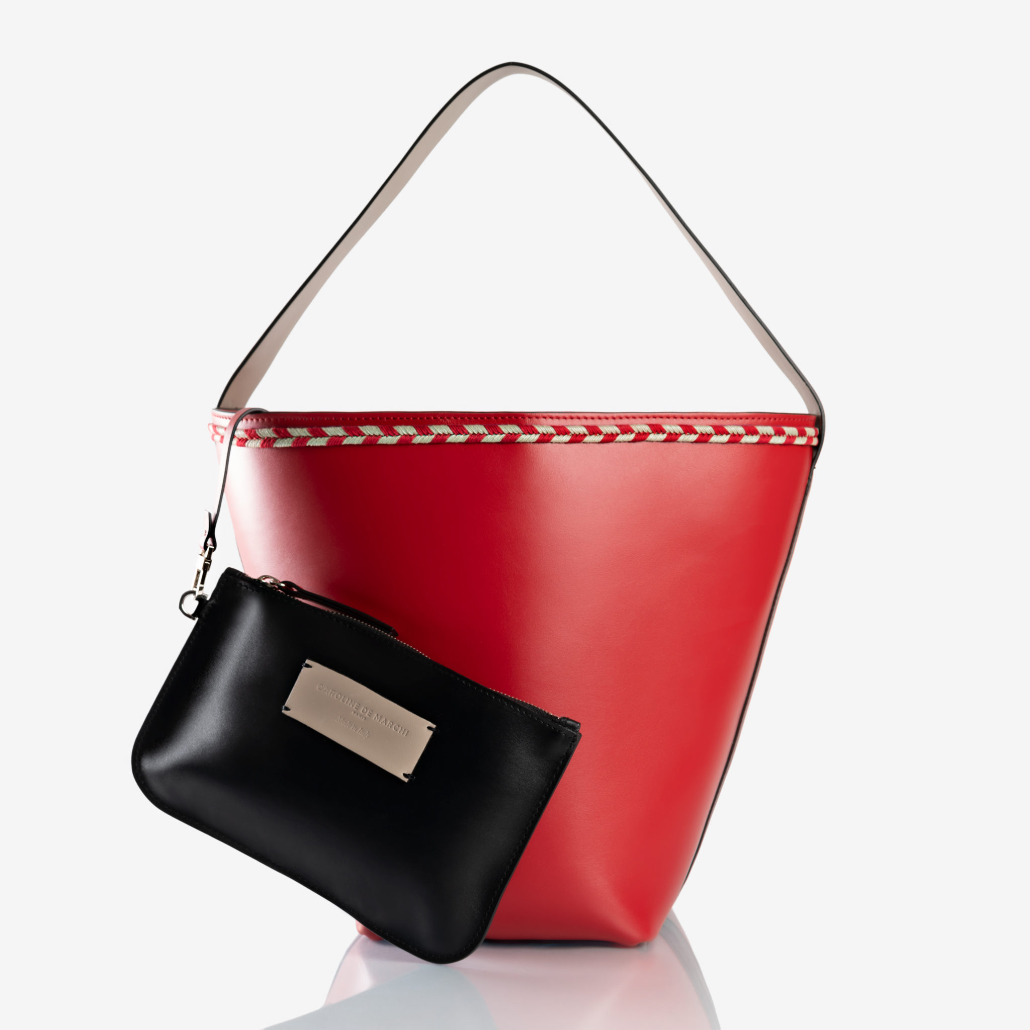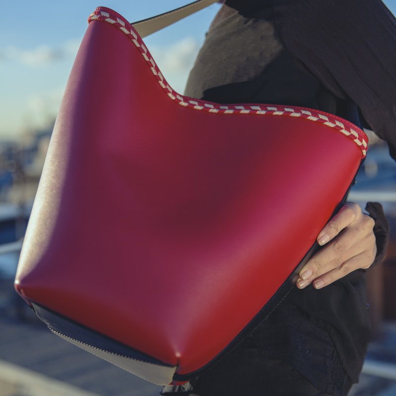 Le Babi, réinterptrétation du sac "seau" développé cette saison exclusivement en cuir lisse rouge, affirme son design épuré.