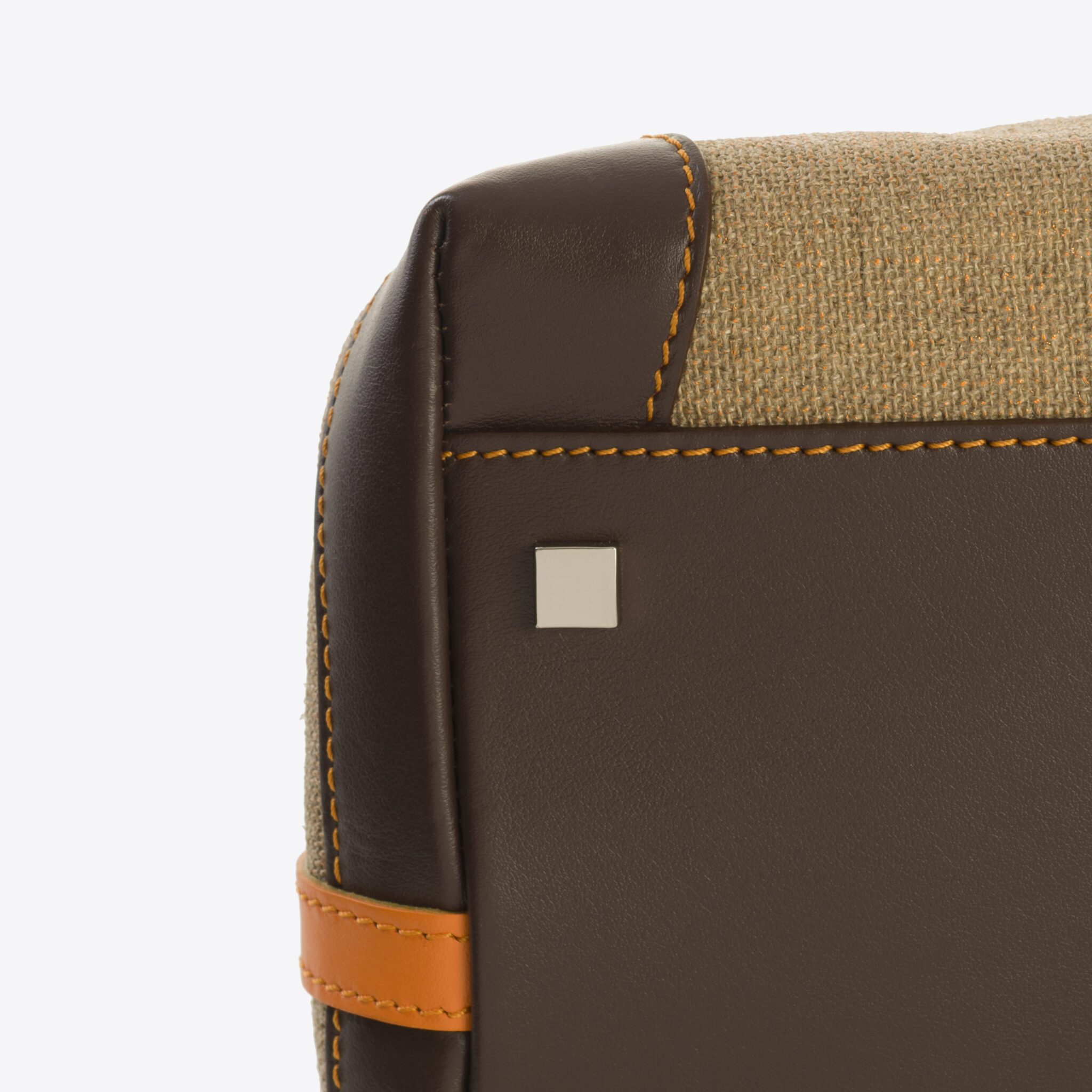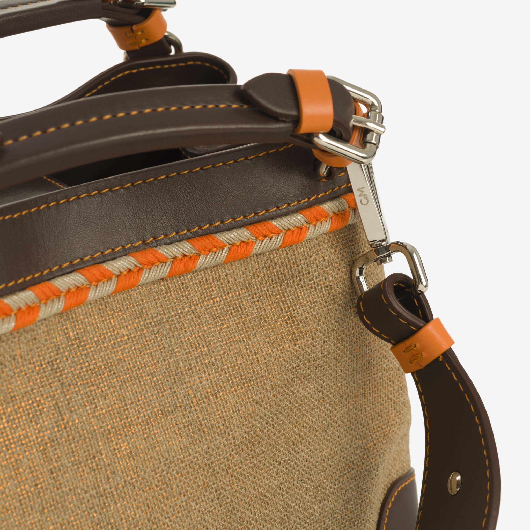 Accessoire incontournable de l'été, le Cubo Ilha mêle un cuir élégant et un tissu en lin métallisé vitaminé, offrant ainsi de surprenants contrastes.