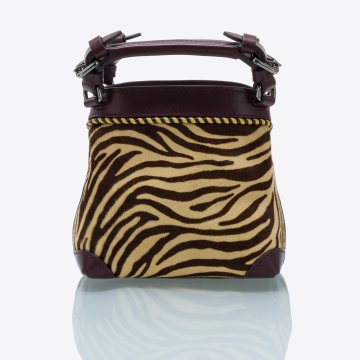 Décliné en version mini, le Cubo Marmara met à l'honneur les contrastes et s'enrichit d'associations inexplorées. Il se pare de cuirs aux couleurs vibrantes et d'un veau façon poulain imprimé d'un motif zébré, association généreuse qui évoque la richesse et la somptuosité des étoffes de l'Orient.
