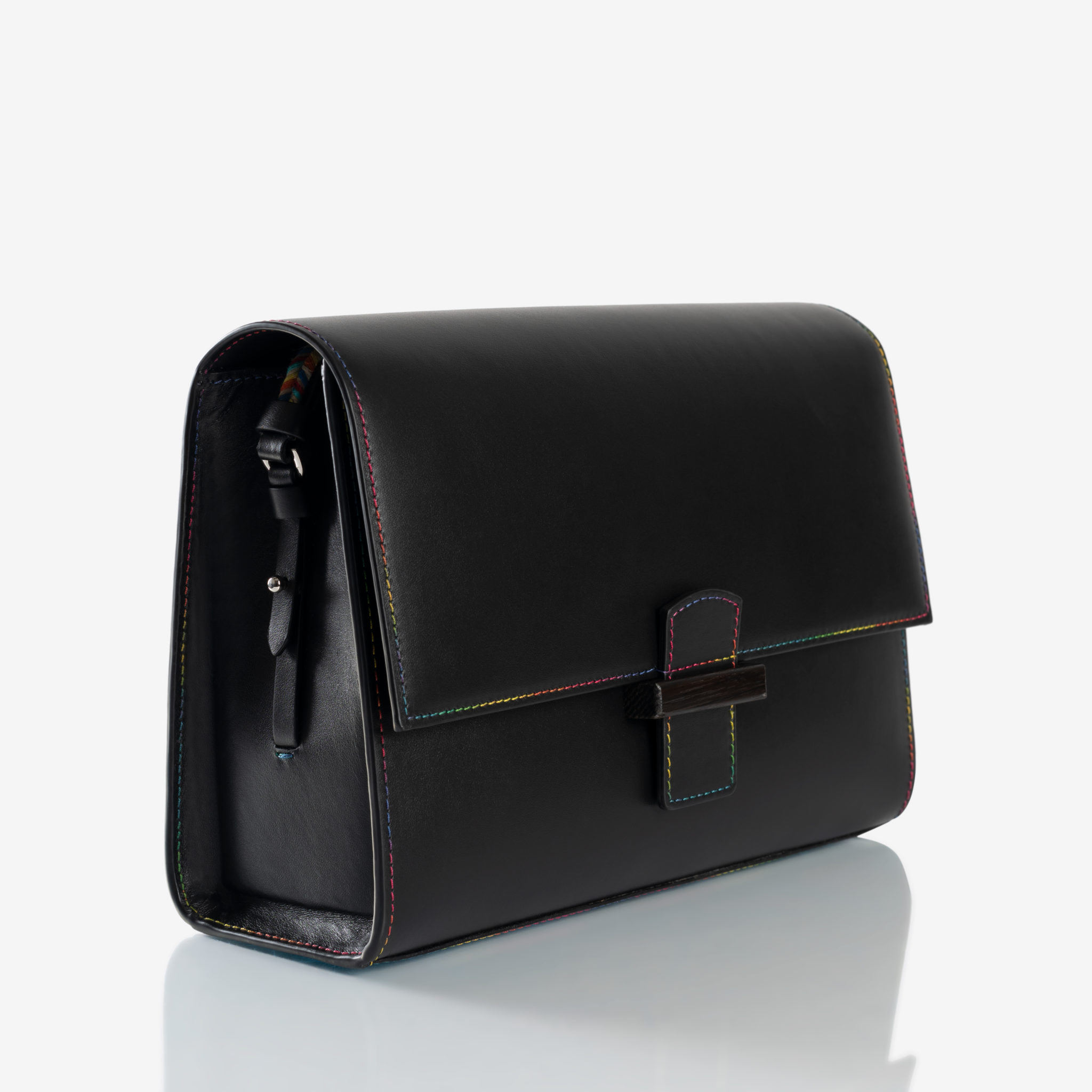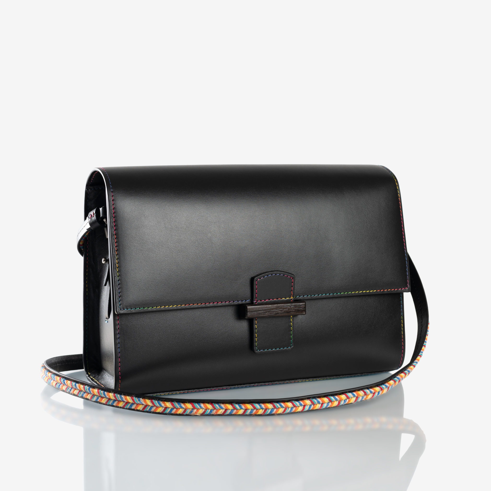 Pour cette saison printemps-été, le Reka, sublimé par un cuir noir de haute qualité et rehaussé d’un fermoir en bois délicat, s’adapte à toutes vos envies.