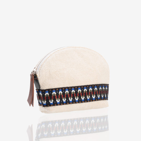 Cette trousse nomade est confectionnée dans une toile de coton lumineuse paré d'un motif ethnique coloré délicatement tressé.