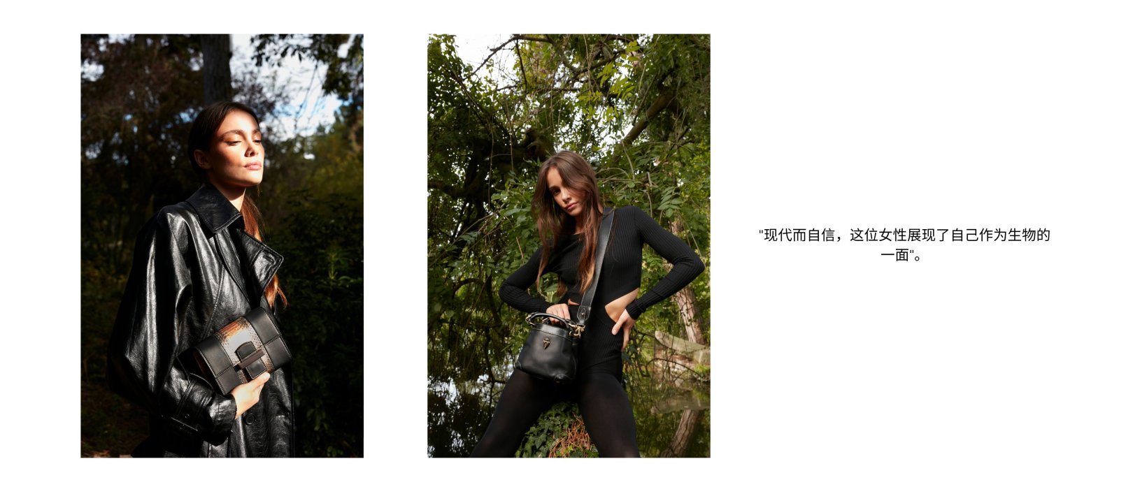 高贵的亚光皮革或青铜皮革的炼金术正在发挥作用。 林地物语 "神奇而精致,是对森林精神名副其实的讴歌。木材、树皮、树根、缠绕的树枝、树叶、岩石、瀑布...... 融合的艺术是设计师的真正标志,通过标志性的表面处理,在木色调中得到了升华:极致的内饰、自信的缝线、直截了当的手柄和木质细节让每只手袋都巧妙地完美呈现。